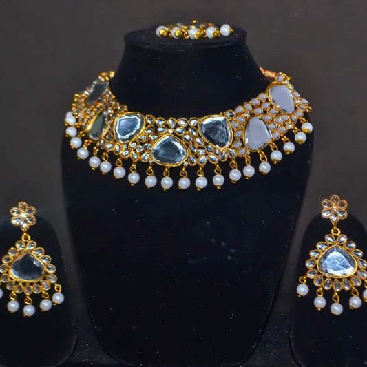 Faux Pearl and Drop Kundan Studded Choker Necklace Set for Women